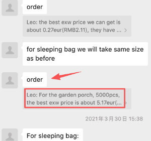 On March 30th, we updated the garden porch price and lead time, our partner confirmed the order.